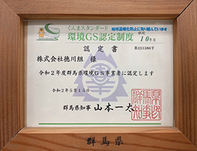 ぐんまスタンダード環境GS事業者に認定されました。